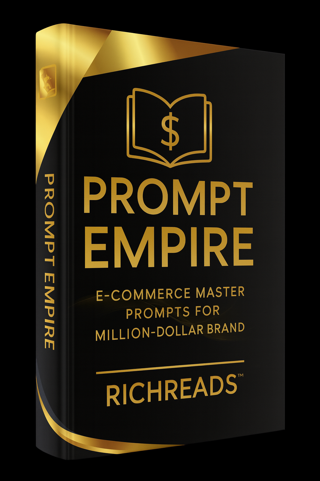 Prompt Empire is the definitive toolkit for e‑commerce founders who want to convert AI into consistent profit. Built by RichReads, this Black & Gold Luxury Edition contains 1,000 high‑precision ChatGPT prompts organized into tactical modules that cover every aspect of a Shopify business — from store design and product discovery to ad warfare, automation, and global scaling.